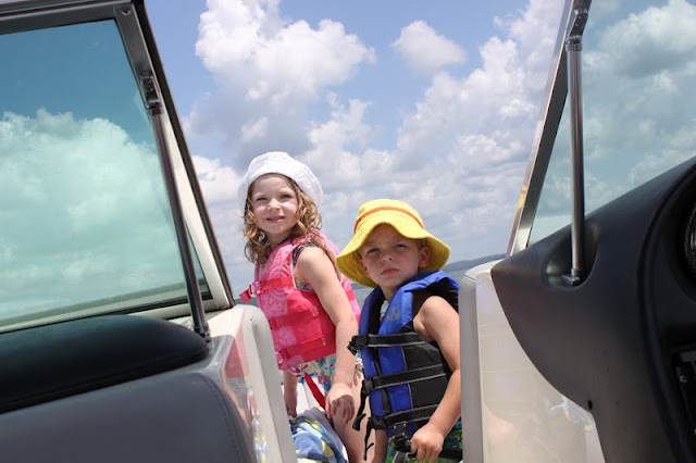 They had a wonderful time living the lake life. They went to "goat Island" and fed the goats apples. This is always one of the kids favorite things to do when we go to the lake. Grams and Grandpa took them to the movies to see Ice Age the drift in 3D. Ms. Cristal made rainbow cookies with the kids and colored with Ella Catherine. They went to see the waterfall and enjoyed jumping off the boat into the water. A trip to Pickwick State park allowed them to swim at the beach, feed the geese and play in the park. Last but definitely not least, they had their first tubing experience. I'll let the pictures speak for themselves, but here is a hint....THEY LOVED IT!!!